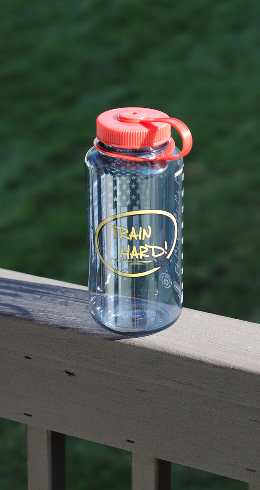 Firefighter Thin Red Line American Flag 32 oz. Sustain Wide Mouth by Nalgene® Smoke Gray Bottle / Black Cap